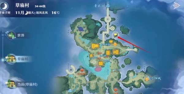 雀儿鸣支线任务中需要找到跳跳,跳跳的位置如下图所示,在地图上方右侧的小岛上,需要飞过去。玩家只要接取任务后开启大地图就可以看到任务的路线了,地面上会有光点,跟着走就好了。如果中途跟丢了那么按照图示前往对应位置即可完成任务。