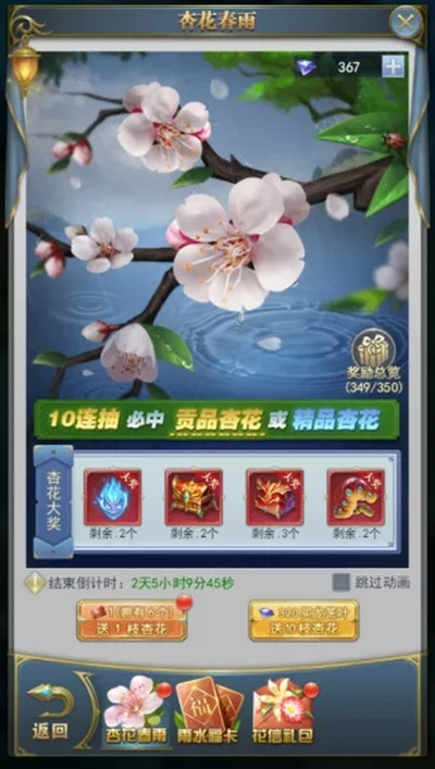 活动期间,花费钻石摘取杏花即可获得丰厚奖励
