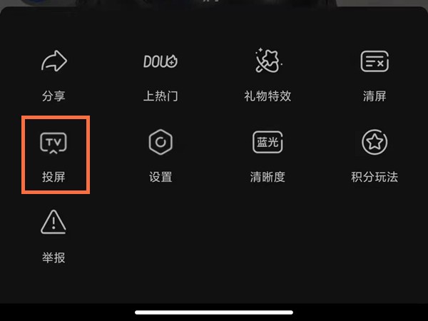1、开启抖音软件,选择想要投屏的直播间,选择右下角三个点的图标,找到投屏。