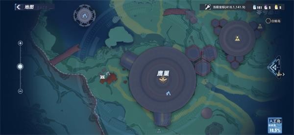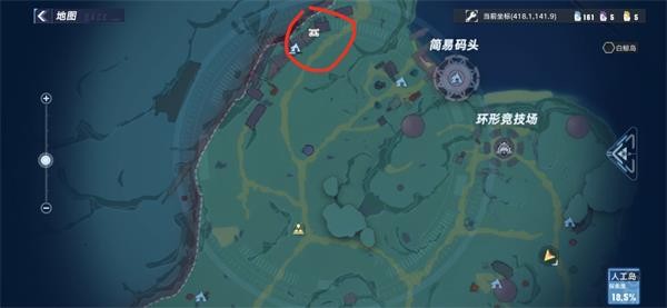 5、随后进到传送器传输到浮空岛之后,位置在标签处,具体位置在下图,外环线上。