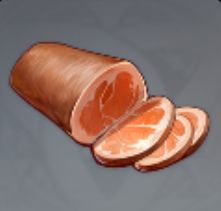 3、描述:经过熏制的腿部兽肉,薄薄的一片就能带来满嘴的芳香。需要将兽肉先行加工,才能制成火腿。