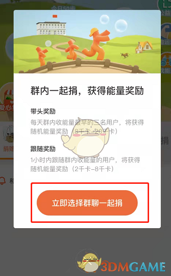 4、点击立即选择群聊一起捐,然后选择一个群,发送邀请好友一起来捐步即可。