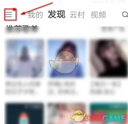 1、在自己手机上找到网易云音乐并打开,然后点击左上角如图所示图标
