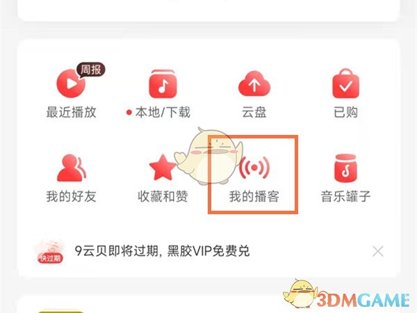 1、打开网易云音乐app,在我的界面找到我的播客。