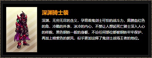 3、大名鼎鼎的深渊骑士套,其中男鬼剑和男枪手可谓是誉满天下,深渊骑士和鸟人套是许多男鬼剑和男漫游心心念念的对象,无与伦比,经典之极。
