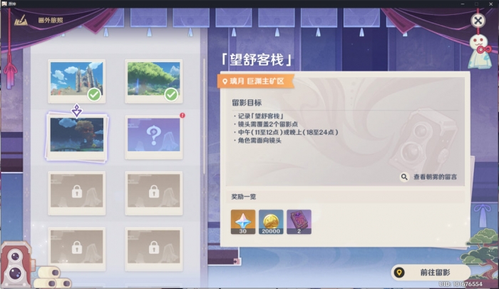 以上就是原神画外旅照第二天攻略2022,更多原神相关资讯,敬请关注光行资源网。