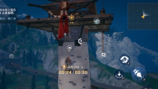 步骤一:接到任务之后或用加速,或用钩锁将自己迅速拉到靠近尖塔的位置。