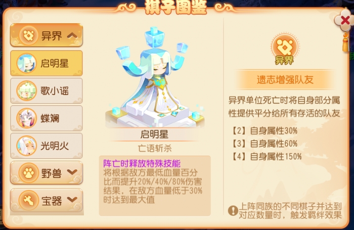 除了野兽阵容,我们还可以搭配异界羁绊,进一步保护输出单位,提高攻防属性。搭配女娲阵容给输出单位增伤,甚至搭配海洋单位,先开场压制,再单点击破。