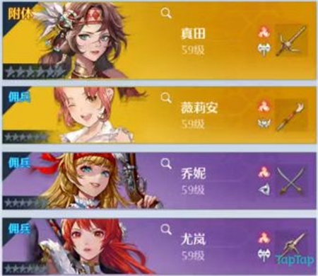 附体幻灵选择斗士真田,佣兵幻灵选择火系贤者薇莉安,火系影舞乔妮,火系斗士尤岚