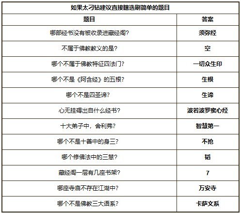 姑苏-寒山寺(37,5):云游僧人,打听【佛学交流】,选择【愿意】(需要回答三题,有时间限制,提前打开答题辅助参考,题库可能不全),答题完成后获得【明慧丹】×5、【声望】×5(少林弟子可以额外获得一座佛像,把佛像交给玄慈方丈可以获得1000功德,佛像点击查看会增加一级佛学)