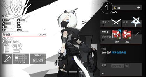 白雪在群体狙击干员中有两项独特的优势:物法混伤、范围减速。但如果玩家有同类干员,就不建议再培养了。