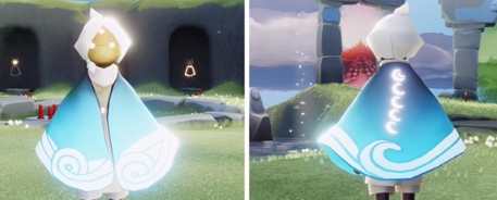 2、这个斗篷非常美丽,外沿是青蓝色,内层是湛蓝色,颜色层层递进,色调逐渐过渡,如同阳光下的海水一样,有特殊的星翼图案,而且斗篷的外沿,有波浪形状。这个斗篷,是光遇第一款不对称的斗篷。