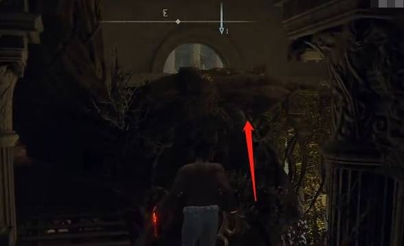 2、来到赐福点教堂之后,跳到树干上并往前走。