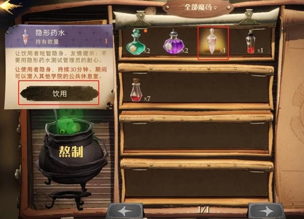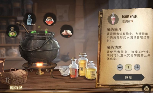 1、打开魔药包,准备好材料调制隐形药水。