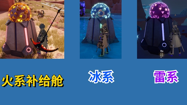 3.橙红色的补给舱对应火系武器,蓝色为冰系,紫色为雷系。