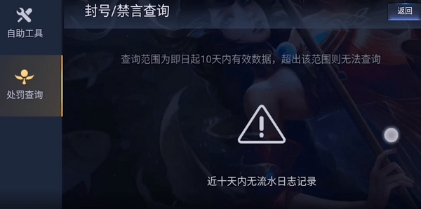 5、查询到十天内的有效数据,如果你有禁言记录的话都可以看到。
