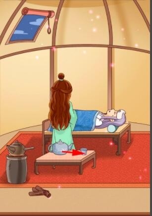 再次给军师吃药。拿走军师手里的手帕。