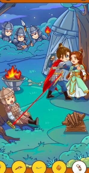 6、拖动长剑到士兵腰间的竹筒上。竹筒之中的文件就是要找的第六件物品。