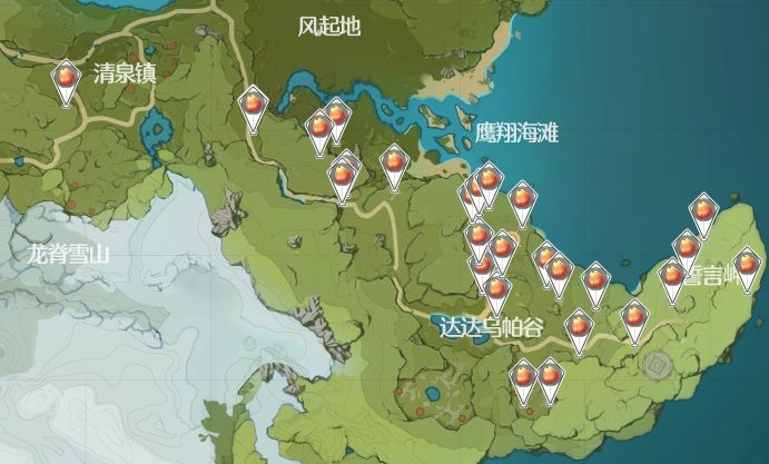 1、达达乌帕达谷,分布日落果果树最多,随便就能轻松的采集到任务需要的。