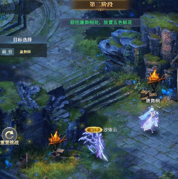 采集五色花灵,在唐舞桐处进行插花,获得强力增益效果。