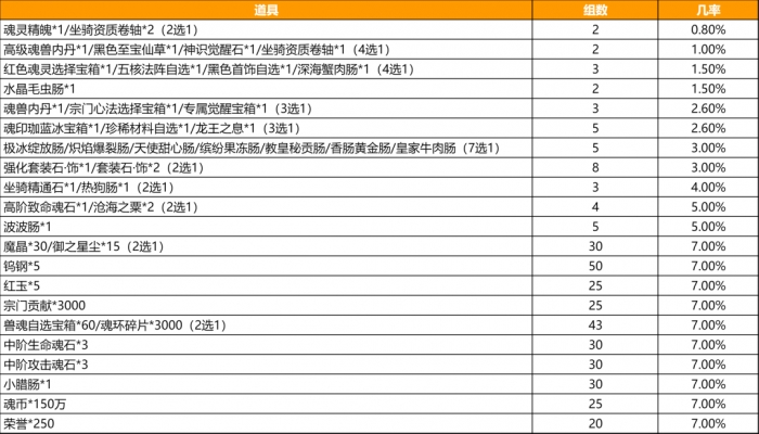 抽奖概率一览: