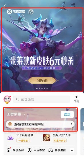 2.进入游戏中心之后,就可以看到活动宣传海报,点击进入活动页面。(没出现海报的话,点进王者荣耀专区即可)