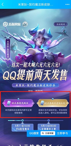 在游戏中心可以提前两天发售,也就是说两天之内在游戏商城中都看不到米莱迪的这款皮肤,只能从这个活动中购买,玩家不仅能直接给自己买,还能赠送朋友,让这款性价比超级高的皮肤作为礼物送出去。