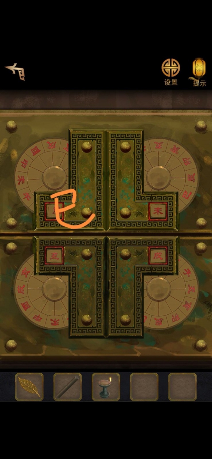 院子右边日晷,把吴签安上去。日晷指向生肖,跟大堂右边箱子有点联系。把油灯分别放四个角落,根据不同的影子指向获得密码。