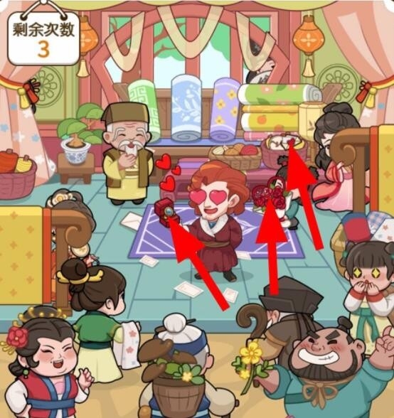 步骤1:点击图中的首饰盒、玫瑰花、情书,找到马可菠萝的求爱物。