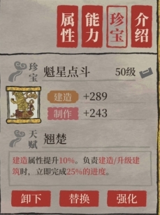 满级属性:建造809,农牧69,制作804,理财252,探险69。