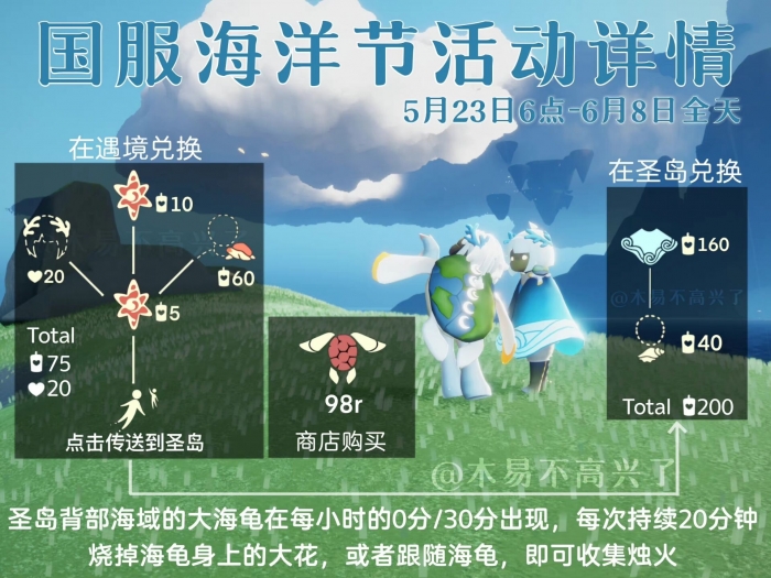 在活动期间,玩家可以在以上时间前往圣岛先祖附近,会有大海龟出现并且掉落一些烛火;
