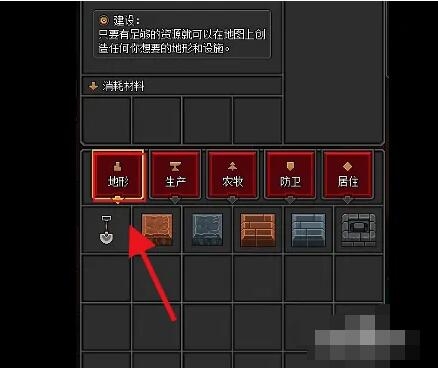 2、点击建造中的地形,选择空格地形。