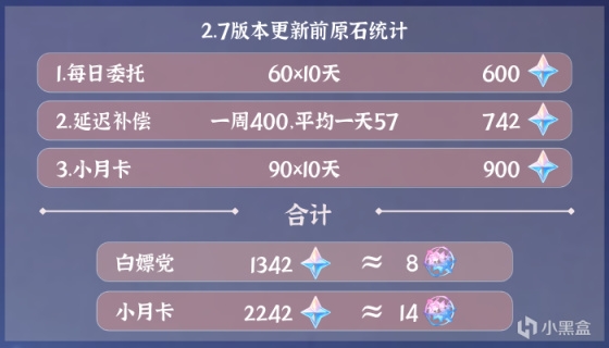 2.7版本的原石统计如下,仅供参考,请以2.7版本更新后的实际获取数量为准