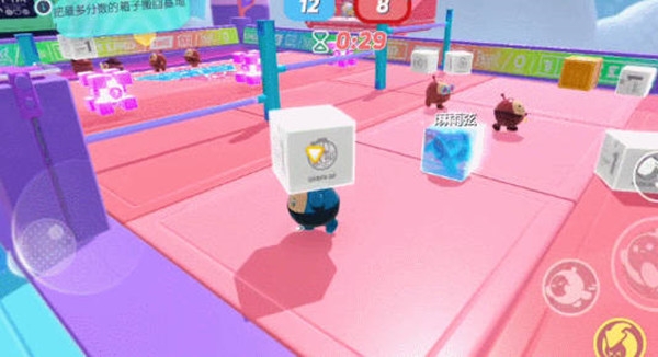 1:我们可以利用道具箱子,干扰对手夺胜机比如在搬箱子的这种积分赛中,场地会有一些道具可以让我们进行高段的跳跃;