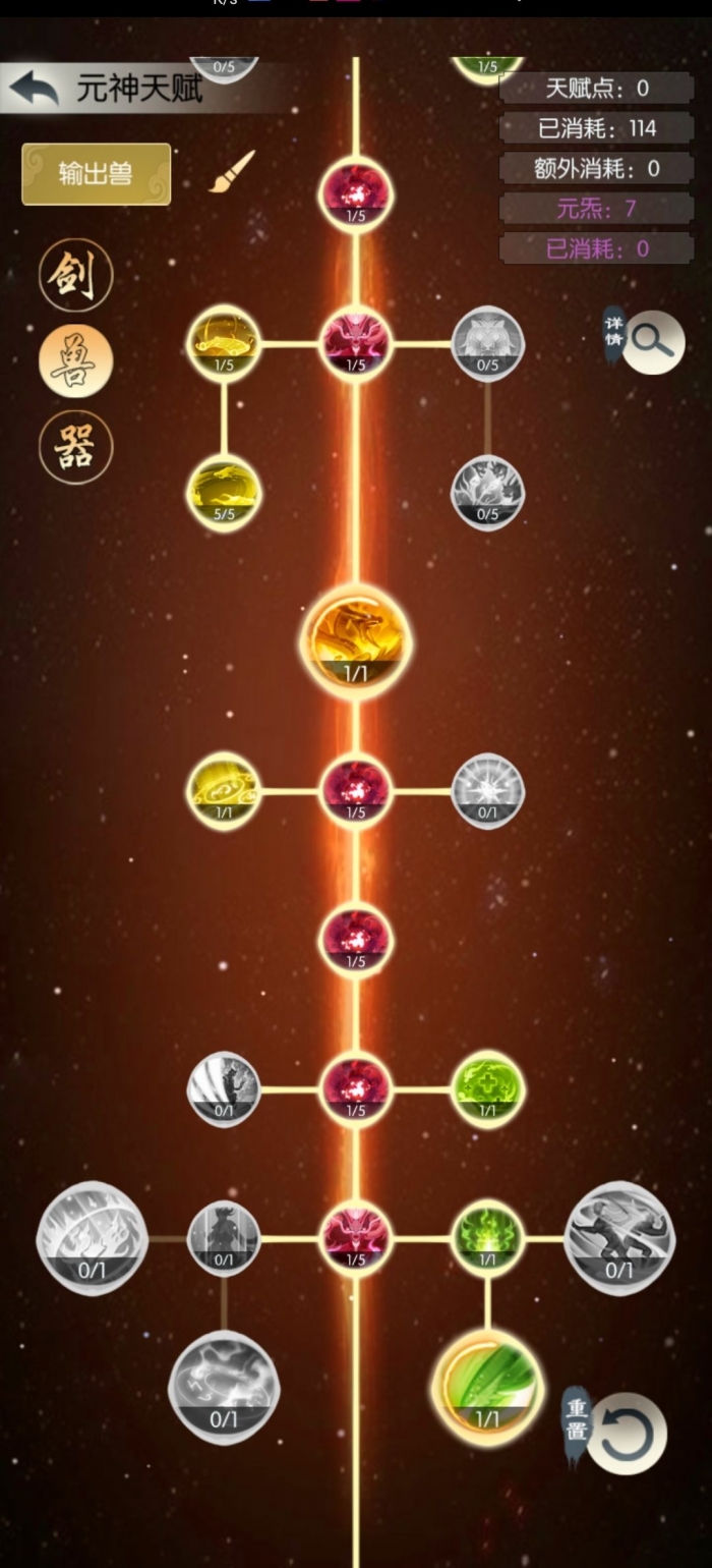 因为使用的是先天云恨,所以天赋和灵兽招式如下(云恨等级拉满):