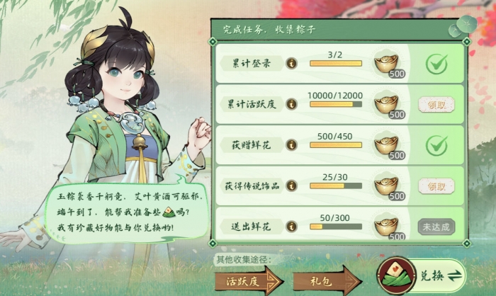 端午节快到了,瑶儿要向斗诡世界的各位NPC赠送粽子。侠士们帮她从各处收集粽子,可以解锁丰厚的奖励喔!