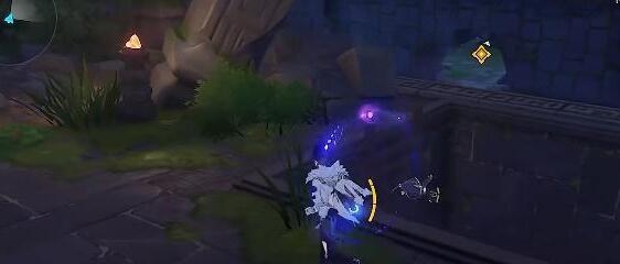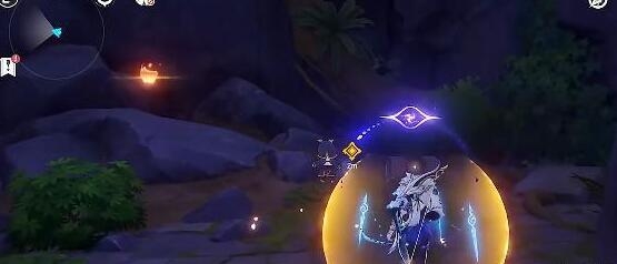 4、过完剧情以后,继续往前走,来到瀑布这里左侧有一个发光的石头,踩上去就能上升到第二层。