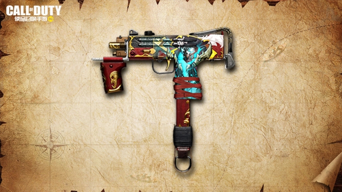 MAC 10-海上魅影的涂装极具视觉冲击力。红色的前握把和弹匣搭配烫金装点,瞬间将战士们带回闪耀荣光的大航海时代。枪身处的海盗船长无所畏惧,正如这把武器的持有者,永远奔跑在冲锋的路上!