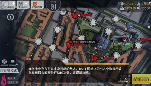 1、本关需要注意敌人身上带有的额外移动的buff,两个小人意味着敌人本回合能移动三次。
