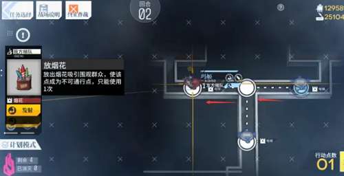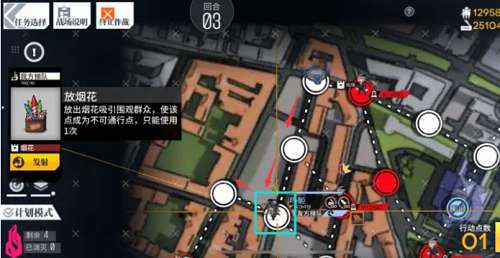 4、第三回合,玛姬向下走,走到最后时,在方框处使用烟花,阻挡敌人。