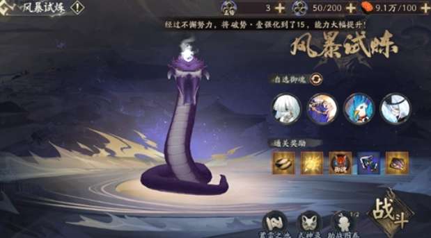 在武神行界面里,除了每日开放的关卡之外还有“风暴试练”爬塔活动,这个活动产出每日自选御魂,也是玩家们说的“999玩法”。
