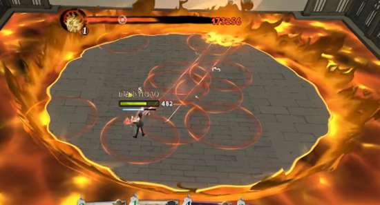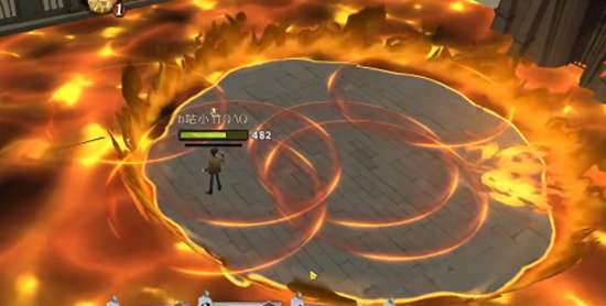 接着火焰圈就会缩小一点,明显可以感觉到圆圈攻击变密集了,最好站在边缘处。