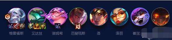 1、阵容成员:格雷福斯+艾达丝+诺姆希+厄斐琉斯+洛+泽丽+崔丝塔娜+赛娜