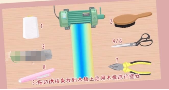 1、【只此青绿】关卡需要制作绒花,首先线放到机器上,可以获得彩色的丝线