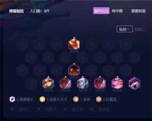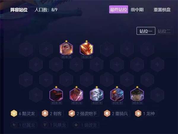 搭配的羁绊有:6黯灵龙、2强袭炮手、2刺客