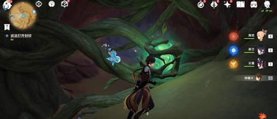 3.击碎石头后,沿着路一直走就行,然后利用四叶印来到封印面前