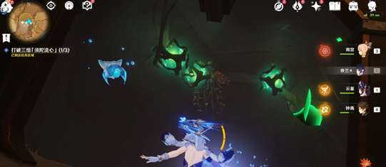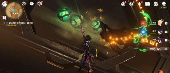 6.利用四叶印往上,打破第一组「须陀流心」,里面还有三个绿球
