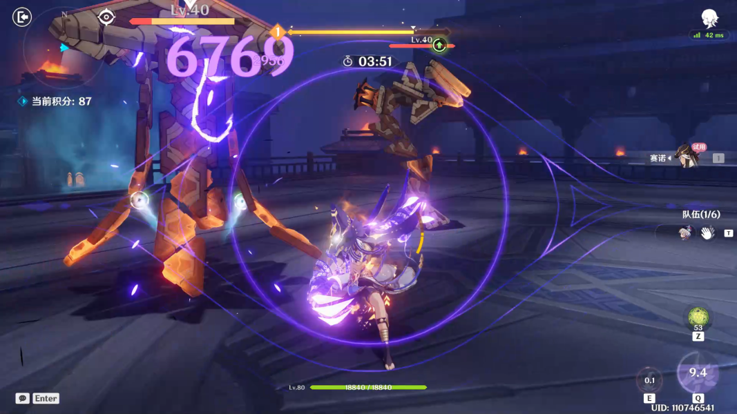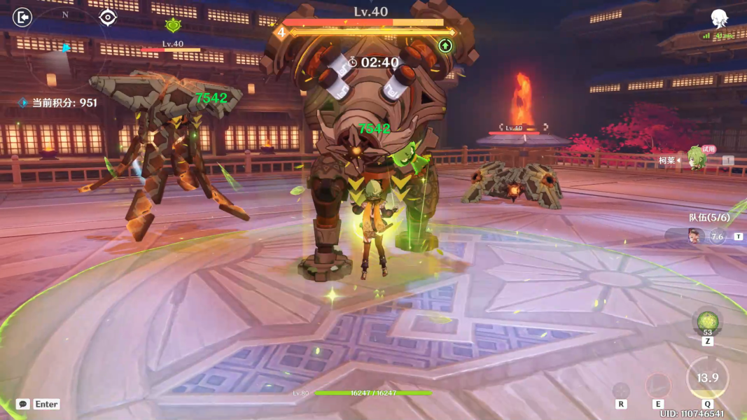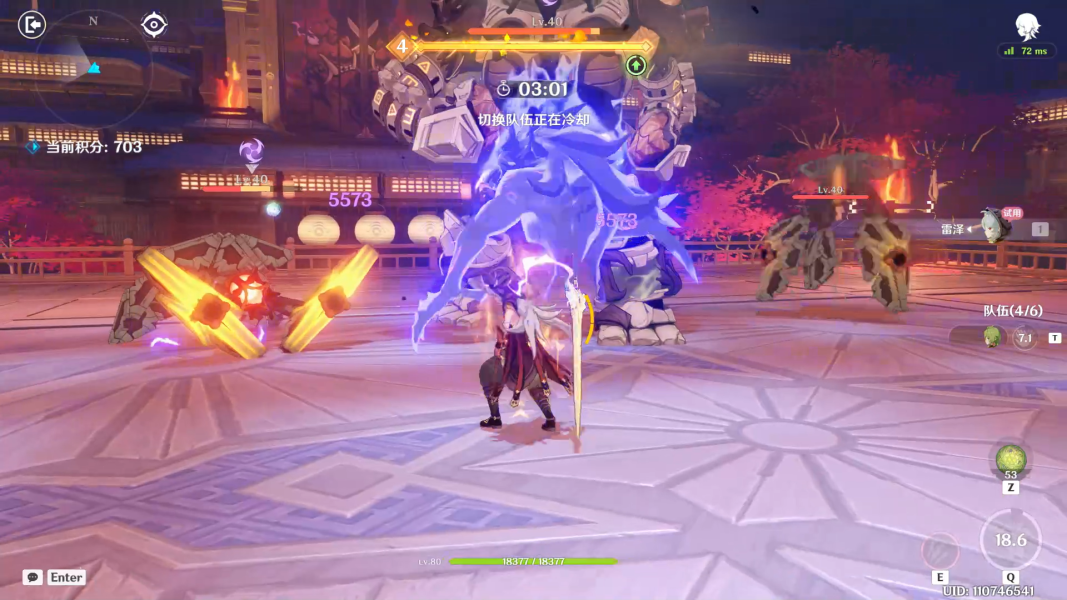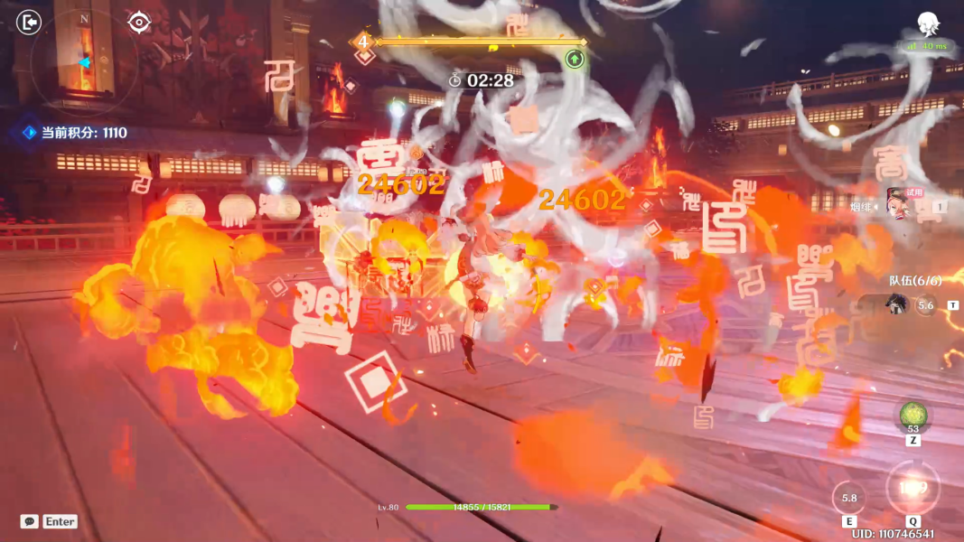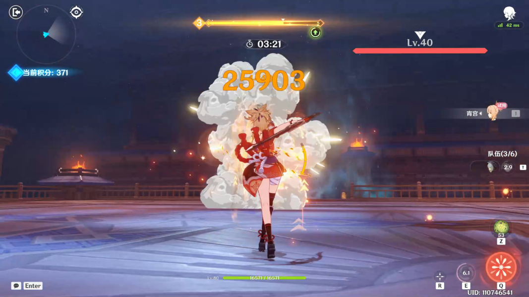 时间一到,立刻换出烟绯EQ输出,之后和宵宫同理,站场地中间A就行。