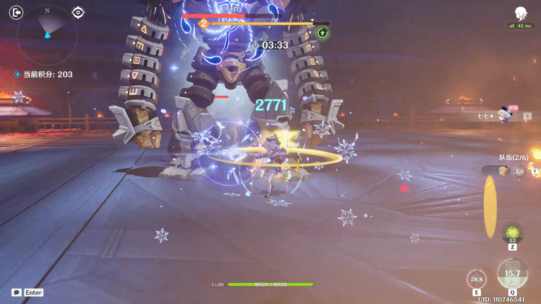 角色七七也只是走个过场,出场QE然后AAA,直至换人时间到。