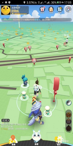 第一:来到游戏第一步就是需要打开自己的所在位置,就是手机的定位需要打开的,游戏有点类似高德地图。地图跟大,宠物有很多。